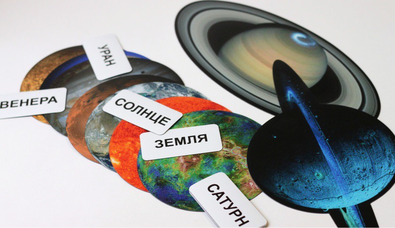 3. И, наконец, для того, чтобы закрепить материал, в состав данного магнитного учебного пособия входят карточки с названиями планет. Они позволят "подписывать" планеты и проводить веселые конкурсы среди юных астрономов.