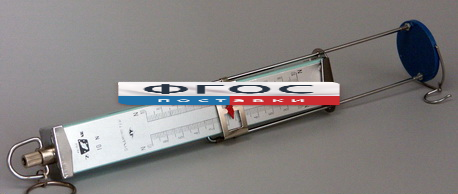 Прибор представляет собой пружинный динамометр, в пластмассовом корпусе, с нанесенной на него двойной одинаковой шкалой измерений (позволяет измерять нагрузку в ньютонах). На верхней стороне динамометра находится кольцо для удержания прибора, а на нижней – металлический крючок для подвешивания грузов и подставка для установки грузов.