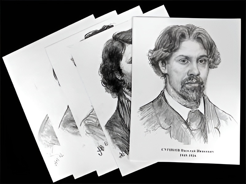 На портретах указаны фамилии (с именами, либо с именами и отчествами) и даты жизни художников.