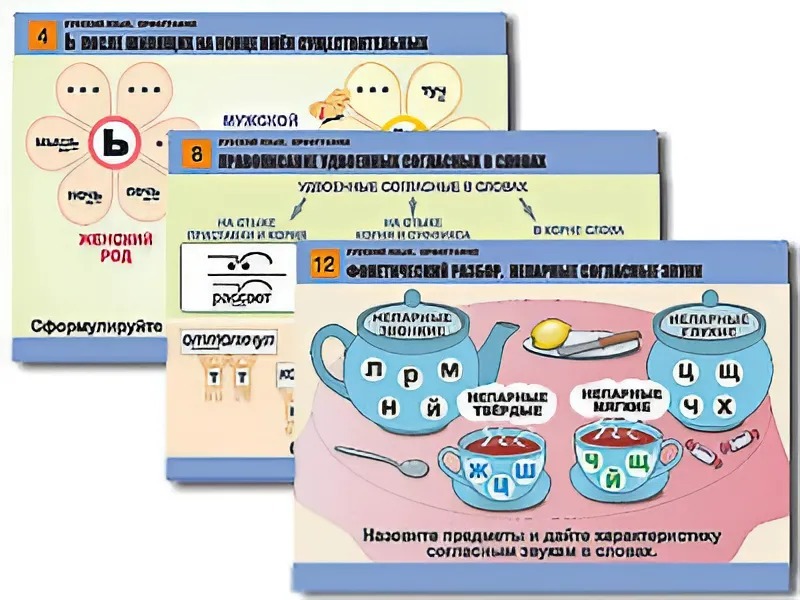 Комплект учебно-наглядных пособий формата А1 с полноцветной двухсторонней печатью и матовой двухсторонней ламинацией в количестве 14 таблиц.
