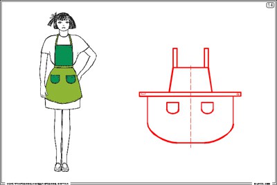 Наглядно-методические материалы комплекта иллюстрируют историю возникновения фартука, разнообразие современных моделей, правила снятия мерок, простейшие приемы конструирования и моделирования фартука, подготовки выкройки к раскрою, схему цветоделения.