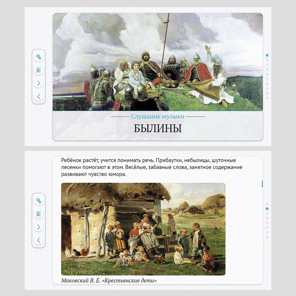 - обучающий материал (тексты, ноты, иллюстрации, аудио- и видеофрагменты);