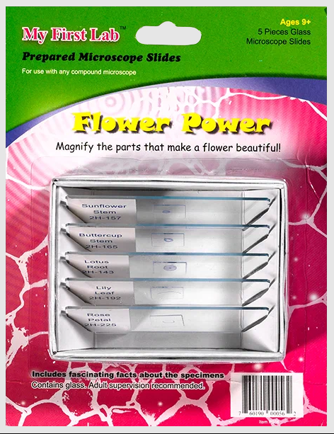 Данный набор микропрепаратов для микроскопа «Цветы» содержит полностью готовые образцы биоматериалов, которые заключены между предметным и покровным стеклами. Наличие воздуха исключено. Стекла надежно закреплены и прослужат долгие годы. Подходит для любого микроскопа.