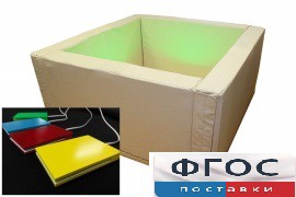 Для выбора цвета подсветки сухого бассейна используются клавиши-переключатели черырех цветов, которые на проводах могут быть как вынесены на стенки бассейна, так и установлены за его пределами на полу.