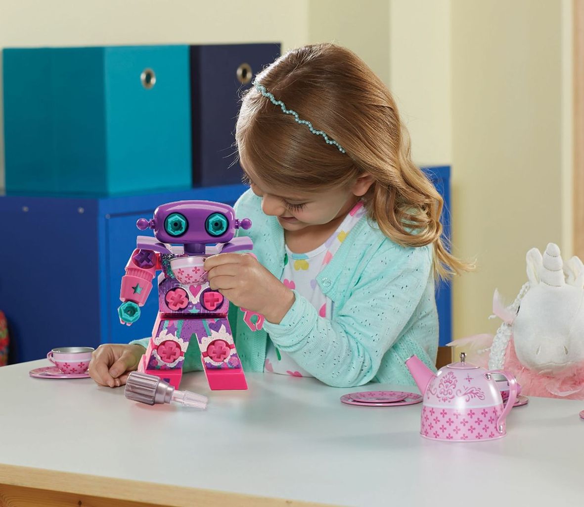 Развивающая игрушка "Закручивай и учись. Робот Искорка" (розовый, с ручной отверткой)