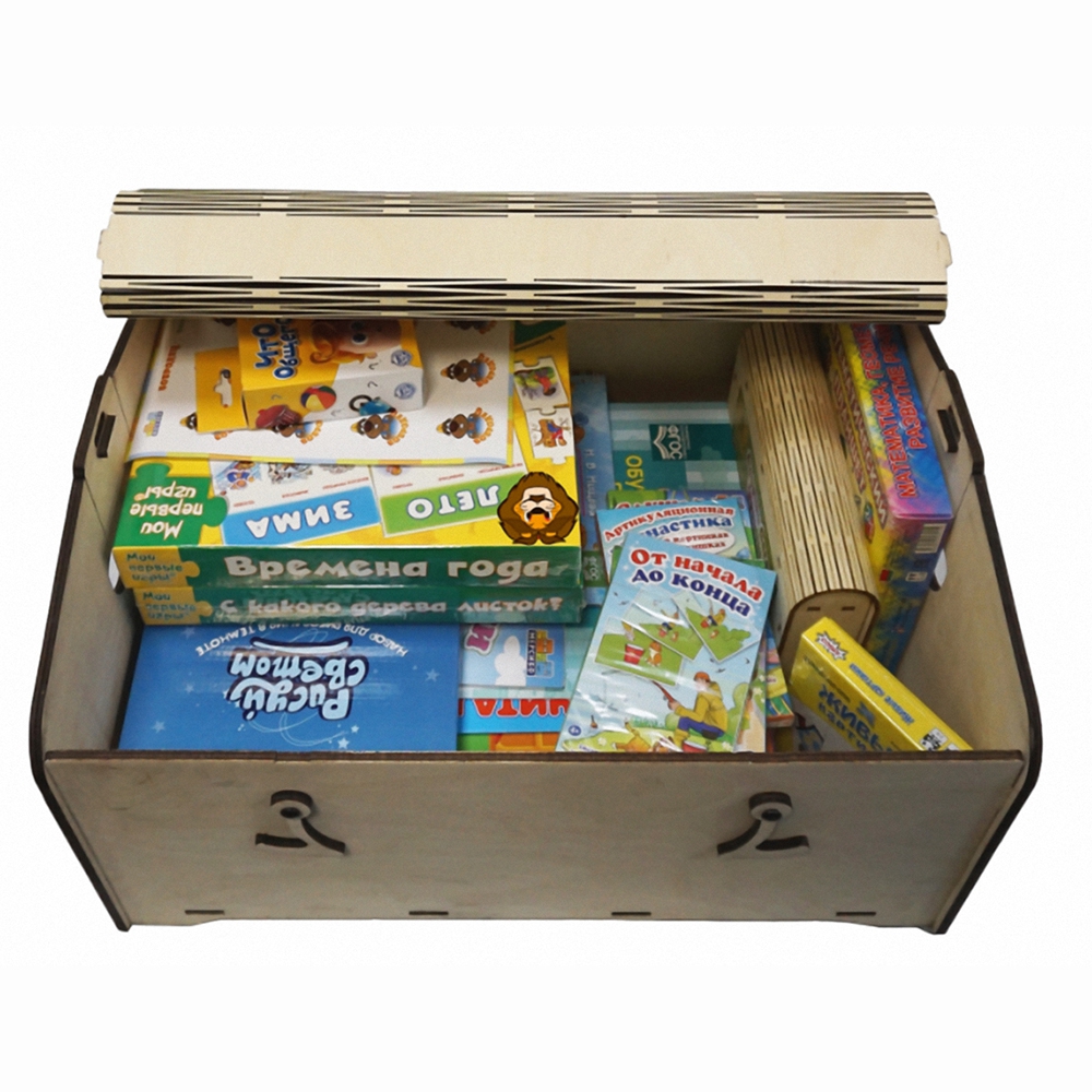 В состав ларчика включены увлекательные настольные игры, а также лучшие методические материалы и наборы для развития ребенка.