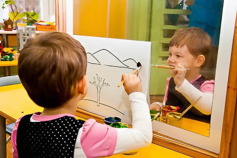 Рабочая поверхность мольберта изготовлена из акрилового стекла и вставлена в раму из натурального бука. Размер мольберта 75*57*6 см. Складные ножки мольберта позволяют использовать его как в вертикальном, так и горизонтальном положении. Зеркало легко крепится к рабочей поверхности мольберта в специально подготовленные пазы.