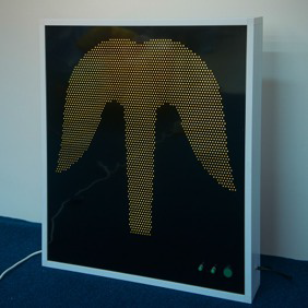 На экране панели размещены светящиеся точки, образующие изображение фонтана, динамически изменяющие цвет в зависимости от интенсивности звуков, воспринимаемых внутренним микрофоном и включенного режима.