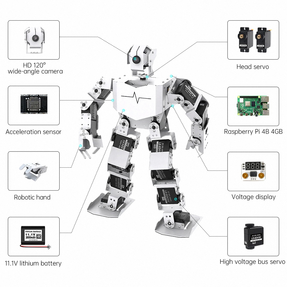 Андроидный робот Гуманоид разработан для изучения робототехнических устройств, шагающих механизмов и углубленного изучения языков программирования. Программирование осуществляется на языке Python.