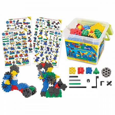 Конструктор Набор Развлечений и Игр упакован в ударопрочный пластиковый короб с крышкой и удобной ручкой для переноски и хранения деталей.
