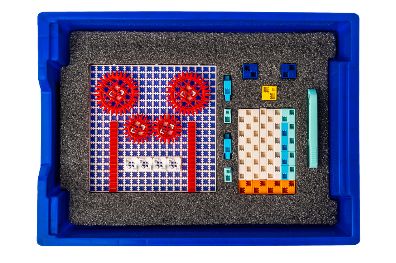 Комплект позволяет создать 19 механизмов — от зонтика до автомобильного дифференциала. Может служить демонстрационным набором при изучении машин и механизмов.