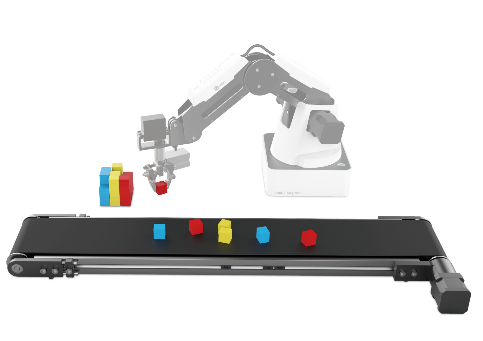 Конвейерная лента для манипуляторов Dobot Magician позволяет создать макет производственной ячейки, обеспечив транспортировку объектов манипуляций, а входящие в комплект датчики позволят изучить основы автоматизации производственных процессов, открывая новые возможности по созданию увлекательных проектов.