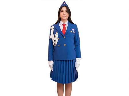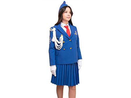 Форма ЮИД представляет собой одежду, предназначенную для подросткового возраста, из хлопчатобумажной ткани синего цвета с аксельбантами и нашивками.