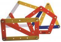 В наборе 68 разноцветных планок разной длины с отверстиями, соединительные элементы и 11 карточек с заданиями различной сложности. Из пластинок можно собрать любую геометрическую фигуру.
