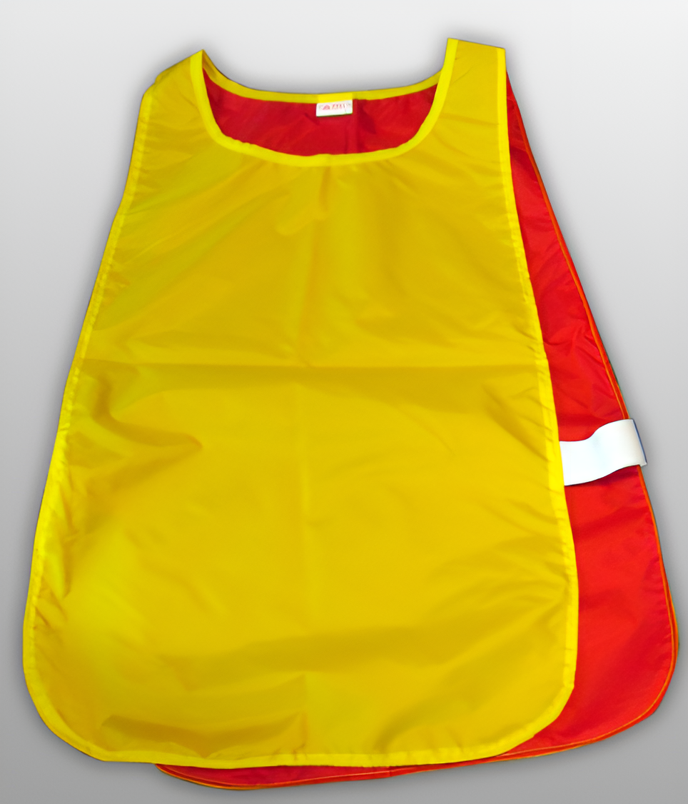 Манишка двухсторонняя универсальная. Материал устойчив к износу – не деформируется при стирке, не выгорает, практически не впитывает влагу, быстро сохнет. Свободный крой предоставляет свободу движениям.  Боковые крепления на резинках позволяют легко надеть/снять манишку игрокам разной комплекции.
