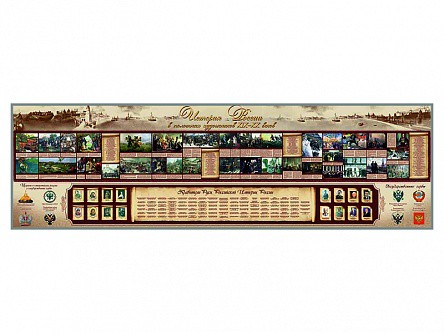 Настенное полотно представляет собой виниловую ткань, на которой размещена информация об истории России и ее правителях.