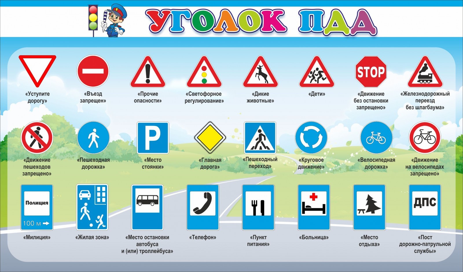Дорога – не место для игр. С раннего возраста детей необходимо обучать правилам дорожного движения. Однако, даже не все взрослые знают, что означает тот или иной дорожный знак. Приобретая этот стенд в группу, дети быстро обучаются различать основные дорожные знаки и давать их точное описание. Стен очень яркий, каждая буква в его заголовке имеет свой цвет. Этот прием позволяет в игровой форме преподнести детям важную информацию. Всего на стенде имеется 24 знака. Изучение этого стенда будет полезно не только детям, но и их родителям. Стенд имеет прочное крепление, поместить его на стене не составит труда.
