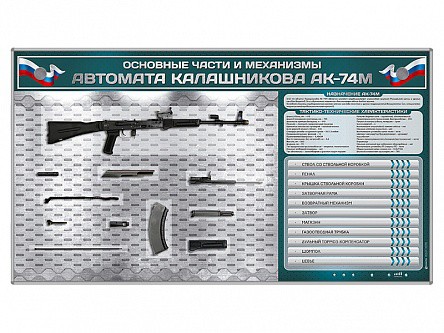 Электрифицированный стенд "Основные части и механизмы автомата Калашникова АК-74М" с полноразмерными, оригинальными макетами деталей и механизмов под стеклом - fgospostavki.ru - Владивосток