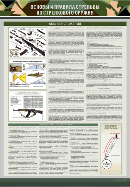 Стенд представляет собой информационную панель, на которой размещены основные правила стрельбы из стрелкового оружия.