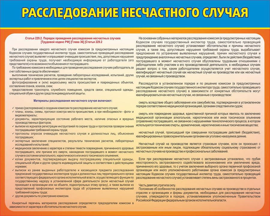 Стенд "Расследование несчастного случая"