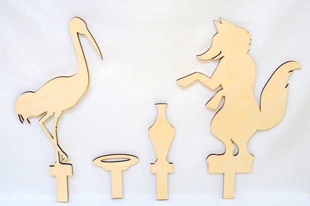 Перед вами – теневой театр «Лиса и журавль», в который входят следующие персонажи: лиса, журавль, а также кувшинчик и блюдечко.
