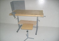 Верстак комбинированный  учебный Вк-У-Пр, с пружинной регулировкой подъема столешницы, с полкой, с тисками и струбциной, в комплекте с защитным экраном и табуретом