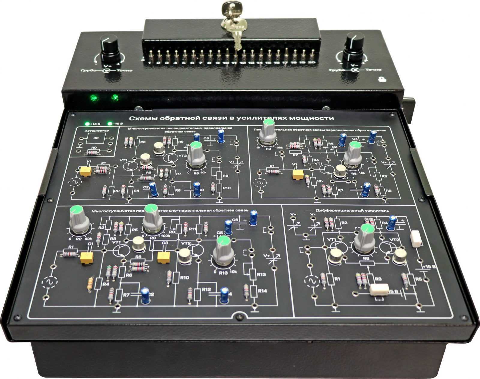 • двенадцатью тумблерами, для ввода неисправностей, которые защищены от доступа обучающихся защитной крышкой с замком (применение зависит от сменного лабораторного модуля);