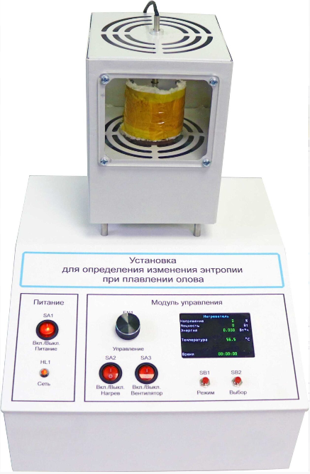 Лабораторная установка предназначена для проведения лабораторной работы «Определение приращения энтропии при фазовом переходе первого рода на примере плавления олова» по курсу «Молекулярная физика и термодинамика» в высших учебных заведениях.