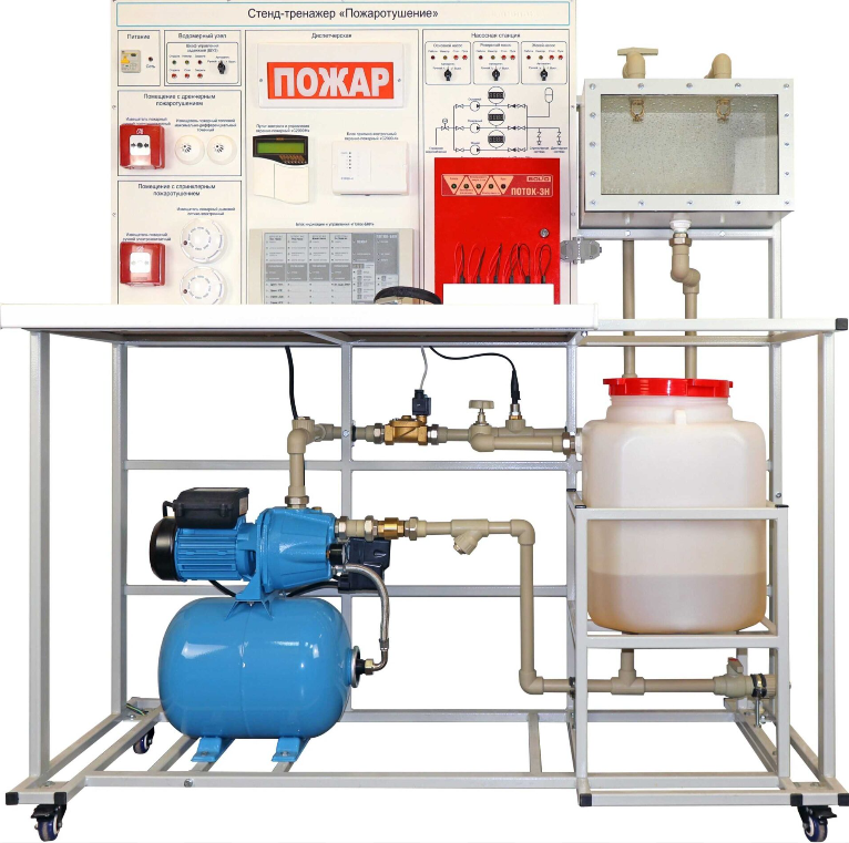 Учебно-тренировочный стенд «Пожаротушение» предназначен для демонстрации работы автоматизированных систем пожаротушения и позволяет наглядно смоделировать процесс работы системы спринклерного и дренчерного пожаротушения для обучения студентов профильных учебных центров.