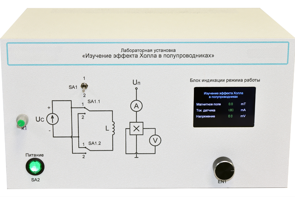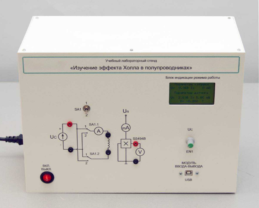 Лабораторная установка формирует одно рабочее место и обеспечивает проведение эксперимента по теме «Изучение эффекта Холла в полупроводниках» учебного лабораторного практикума.