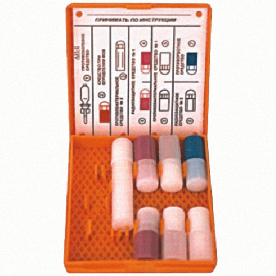 Средство про отравлении ФОВ, гнездо №2, пенал красного цвета. Необходимо принимать по 1 таблетке по сигналу гражданской обороны. При увеличении признаков отравления надо принять еще одну таблетку. Детям до 8 лет на 1 прием дают 1/4 таблетки, а от 8 до 15 лет - 1/2 таблетки.