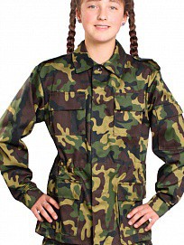 Костюм состоит из куртки и брюк. Куртка с центральной потайной застежкой на петли и пуговицы, по линии талии стянута эластичной тесьмой, с объемными накладными карманами с клапанами. Спинка на кокетке, рукав втачной на манжете с накладными карманами. Брюки на притачном поясе со шлевками и застежкой на петли и пуговицы, накладными карманами с клапанами и карманами с отрезным бочком. Рекомендуемые материалы: х/б и хлопкополиэфирные ткани. ГОСТ 25295-2003