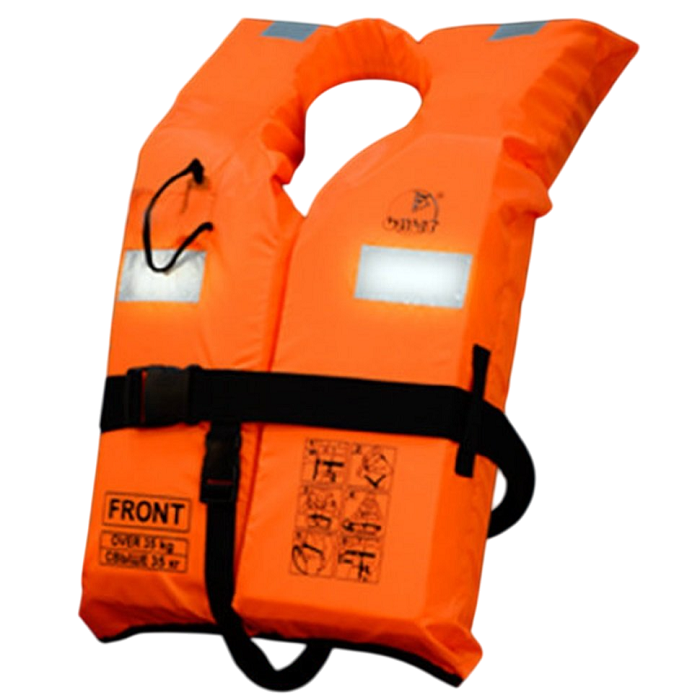 Страховочный жилет, обеспечивающий безопасность во время пребывания на воде. Застежка на молнию по центру и яркая расцветка.