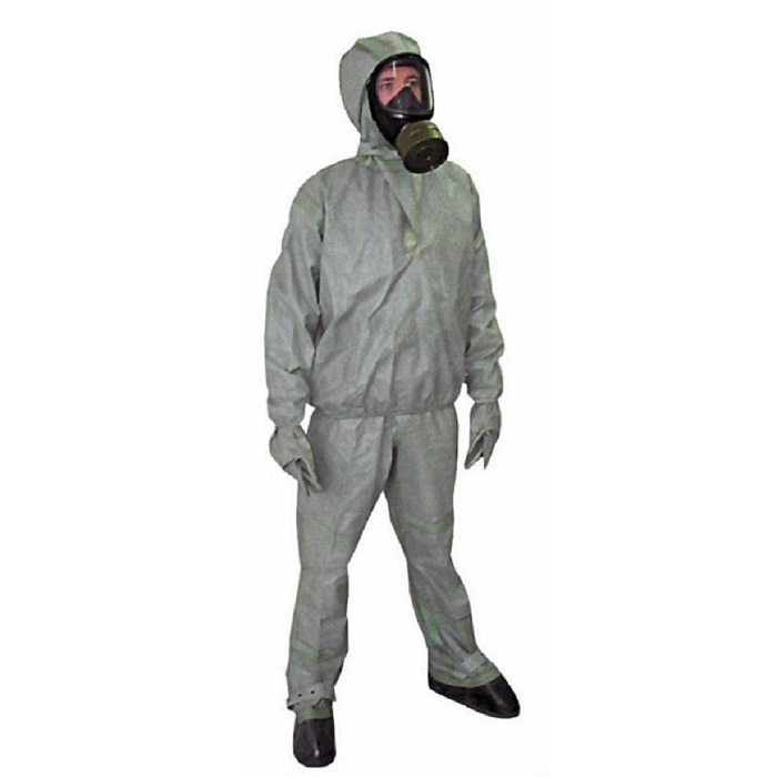 Легкий защитный костюм Л-1 изготавливается из прорезиненной ткани Т-15, УНКЛ и состоит из куртки с капюшоном, цельнокроеных брюк с чулками и перчатками. Предназначен для защиты кожных покровов человека от токсичных и химических веществ.